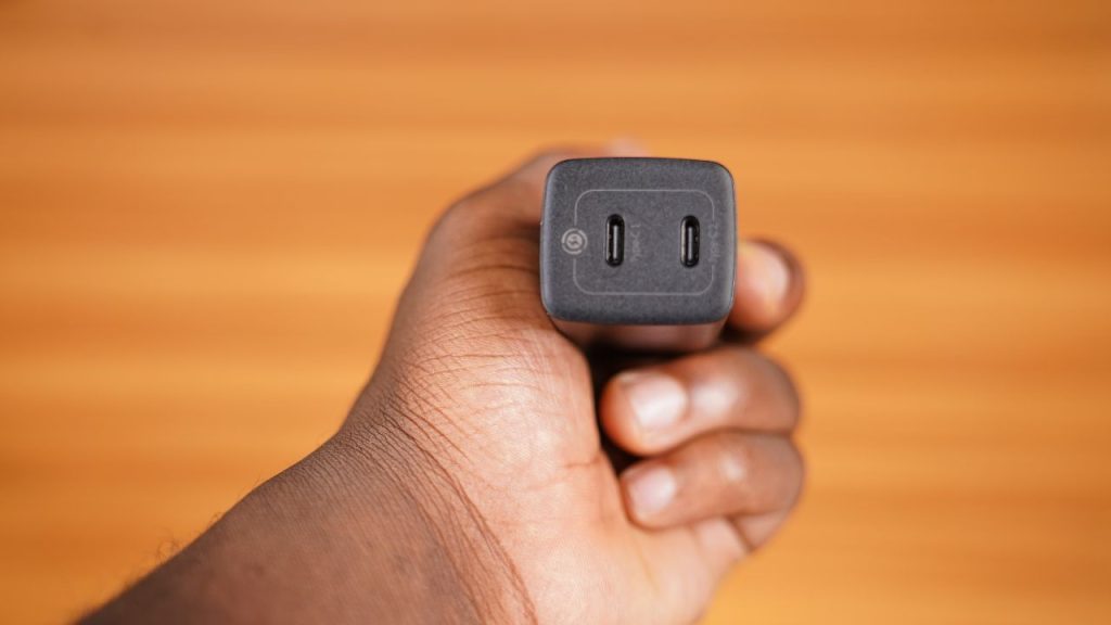 This charger has two USB Type-C ports suitable for mobile devices and other gadgets. USB-C is a new standard, and the port is symmetrical, so you can insert the cable either way. Some people worry that the lack of a USB-A port (the older, rectangular connector common on previous chargers) limits compatibility. However, USB-C is the latest industry standard and features higher data and power transfer capabilities than USB-A.