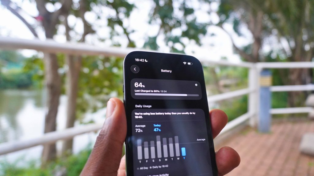 During testing, I was able to use the iPhone Air for up to 13 hours on a full charge. This duration equates to roughly a day’s use before needing to recharge. The iPhone Air also supports an additional battery pack designed specifically for this model, though most users will not require it.